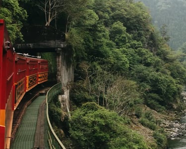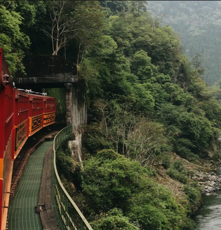 Sagano Panoraminis Traukinys: upės tarpeklio ir kaimiškų vietovių panorama